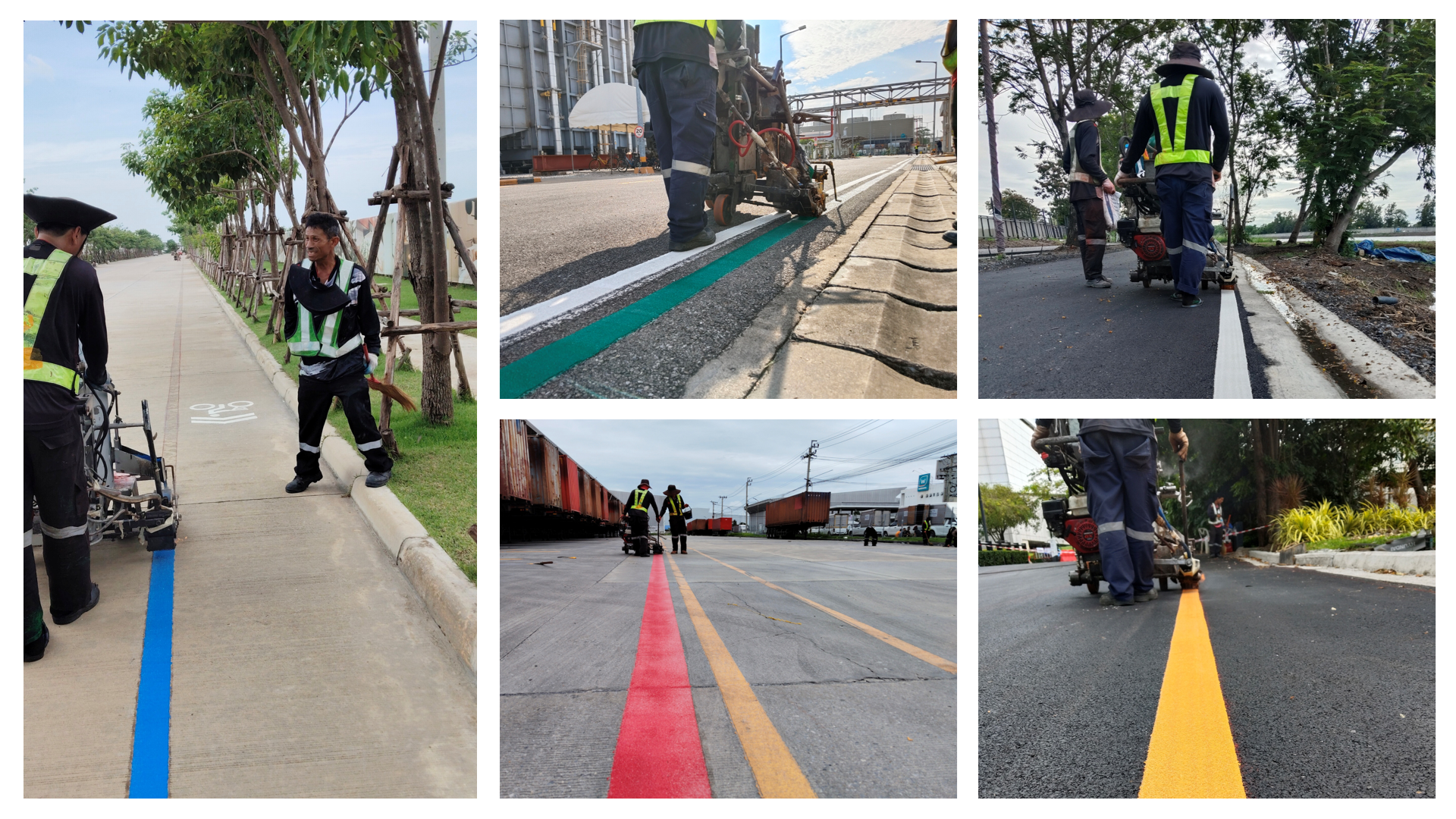 หลังจากตีเส้นไปแล้ว สีแห้งเลยรถเหยีบได้เลย ดูคลิปวีดีโอนะครับ