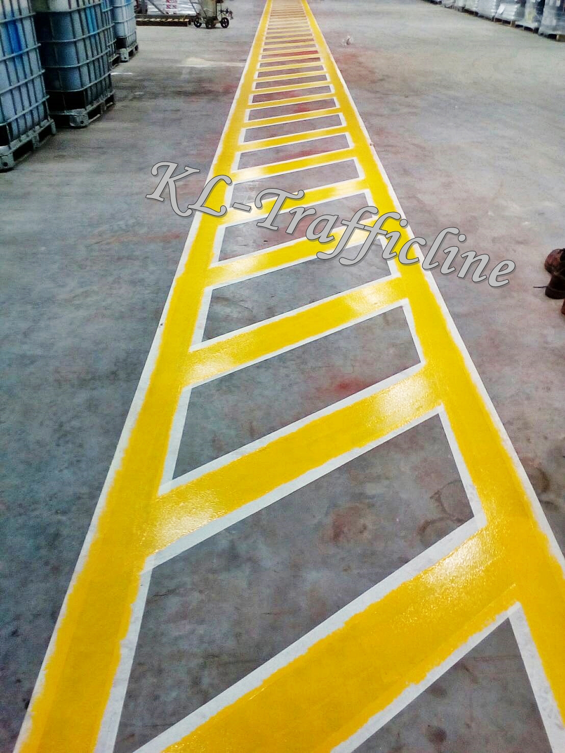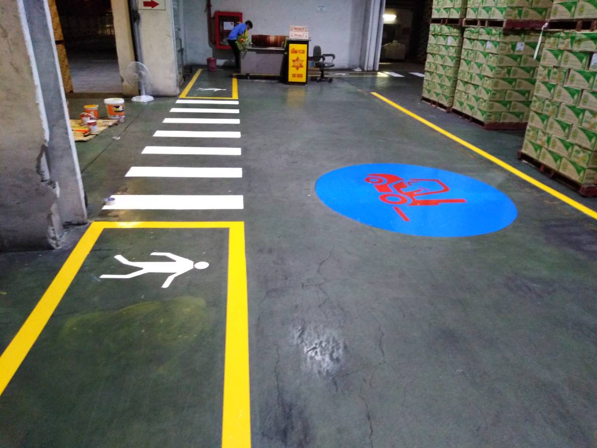 งานทาสีพื้นภายในโรงงาน เนื่องจากพื้นเดิมของทางโรงงานเป็นพื้นขัดมันฟอร์ฮาด ทางโรงงานจึงต้องการทาสีพื้นทางเดินในราคาที่ไม่แพงนัก ทางเราจึงเสนองานทาสีด้วยสีทาถนน โดยสีชนิดนี้ มีความสามารถติดทนนาน และรับแรงขีดข่วนของรถโฟล์คลิฟท์ได้เป็นอย่างดี