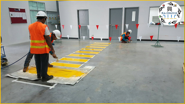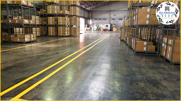 พื้นภายในโกดังเก็บสินค้า ที่มีความมัน ควรใช้สี เพนการ์ด ทำเส้นพื้น